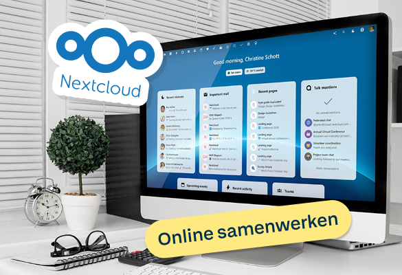 Nextcloud is een open source-platform voor online samenwerken en bestandsopslag. Met dit platform kunnen organisaties documenten delen en bewerken, chatten, videobellen en e-mail, contacten en agenda’s beheren. Doordat de software modulair is opgebouwd, kan hij eenvoudig worden uitgebreid en aangepast aan specifieke behoeften. Nextcloud kan draaien in een private cloud of bij een zelfgekozen provider. Het bedrijf werd opgericht in 2016 en heeft vanaf het begin veel ervaring opgedaan in de onderwijssector.