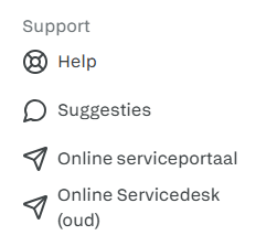 Dan kom je via onderstaande knop direct op het support portaal. Klik binnen COOL rechtsboven in het gebruikersmenu op de snelkoppeling 'Online serviceportaal'. Daaronder is tijdelijk ook nog een link naar de oude 'Online Servicedesk' beschikbaar.